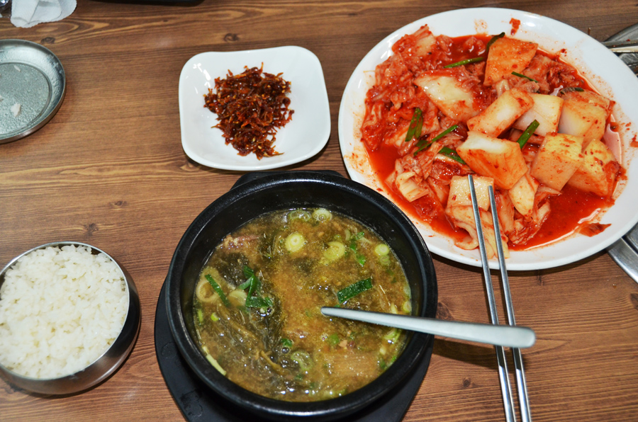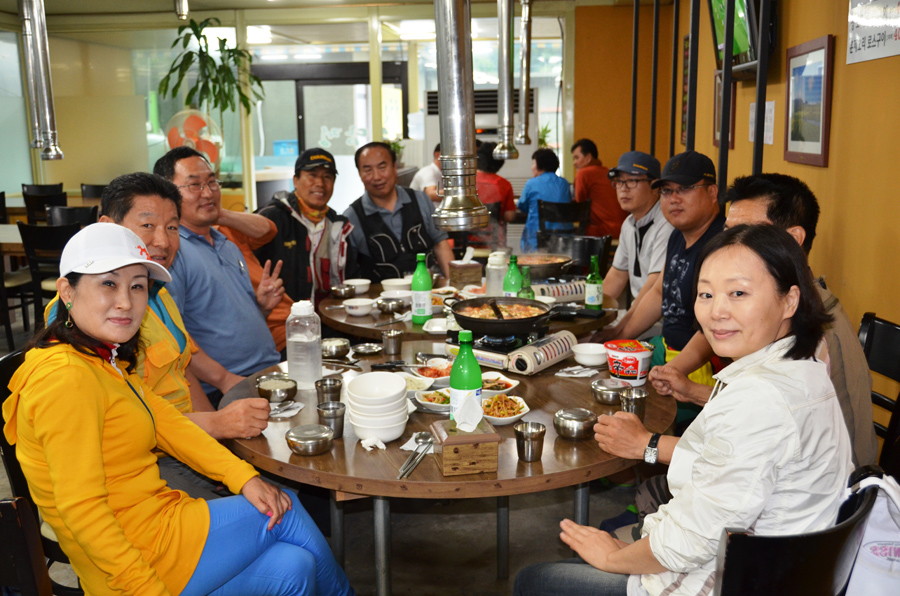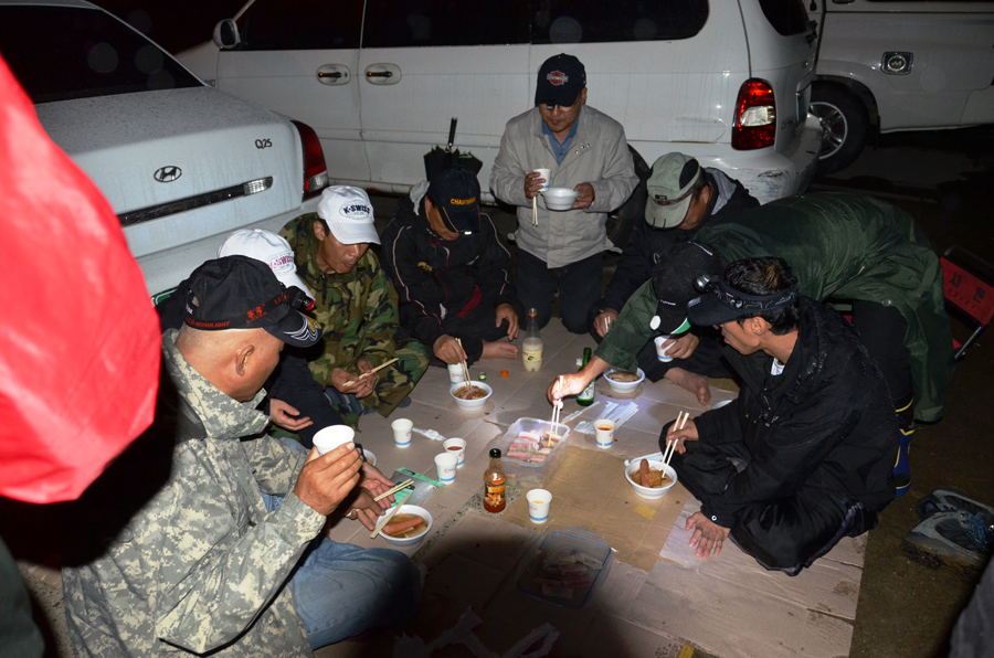 서둘러 채비를 정리하고, 각자의 자리를 청소하고, 우중이라 사전에 예약한 식당에서 아침을 먹습니다.