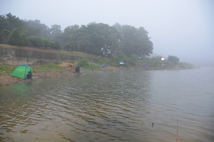 그렇게 짧은 여름밤은 지나고, 아침이 밝았는데 붕어는 보이지 않네요.