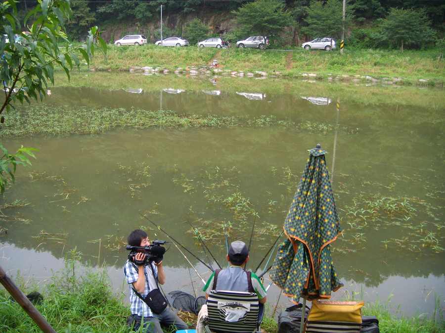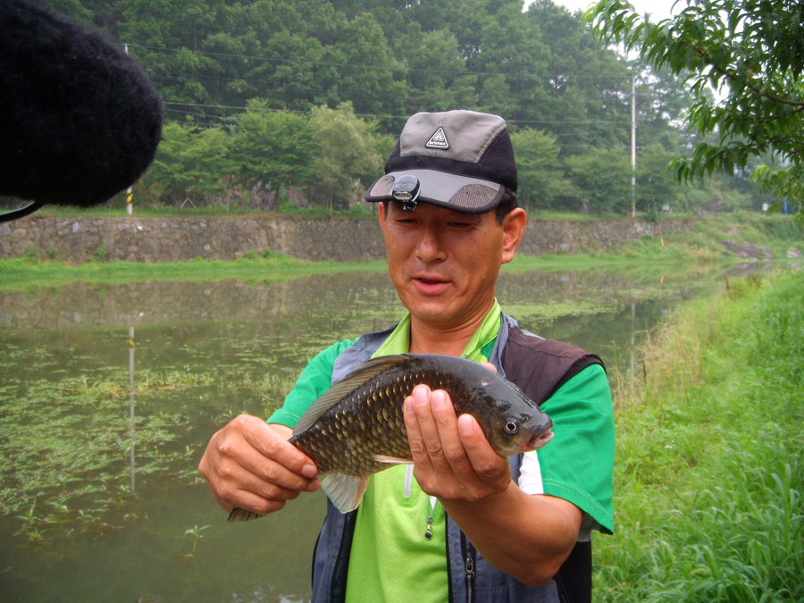 F-TV 촬영하던 차에 수초 쪽에 앉은 조사께서 꽤 큰 씨알의 붕어를 잡아내는 것을 본 게 붕어 얼굴의 전부입니다.