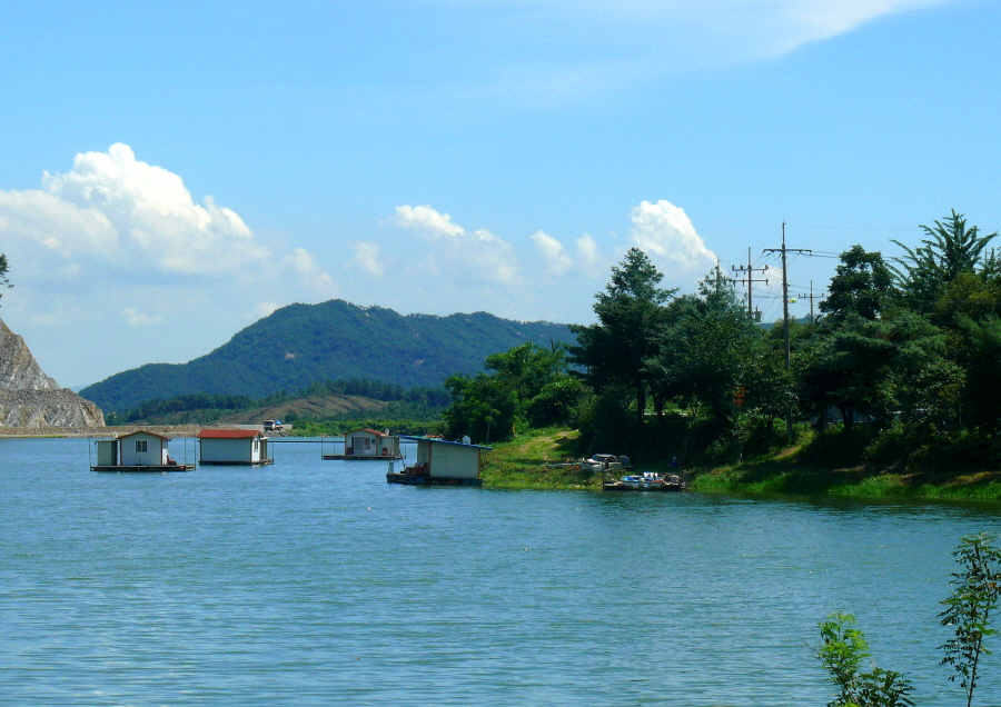 건너펴 상류권에 위치한 수상좌대들입니다.