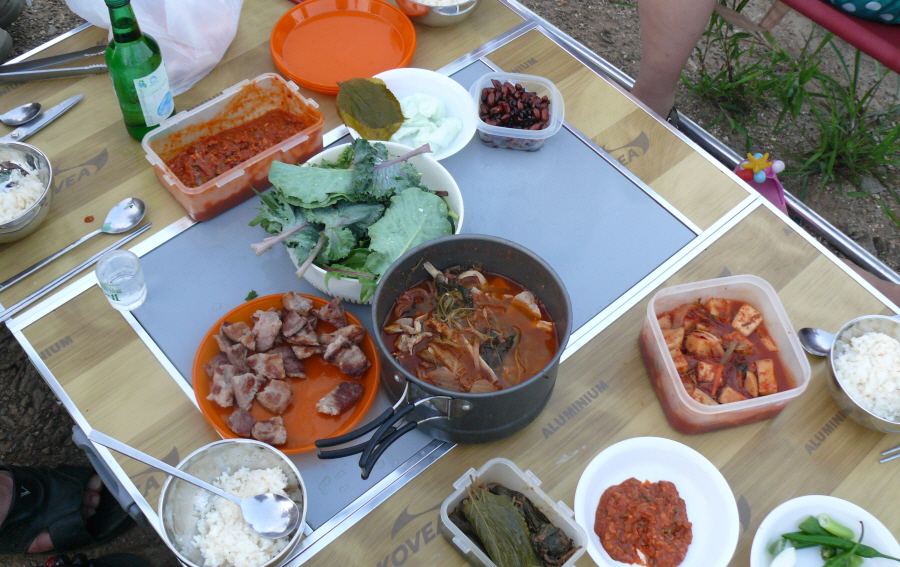 해 질 무렵에 모여 시원한 계곡바람 맞으며 해 먹는 야전의 만찬은 기대 이상의 즐거움을 선사합니다.