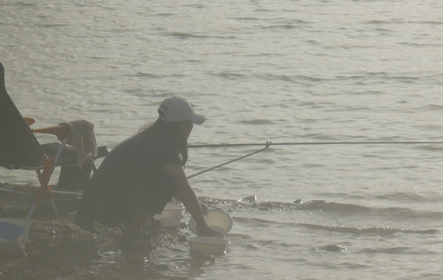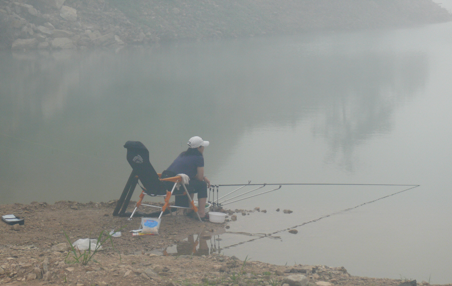 철수 준비를 하면서도 찌를 응시하는 꾼이 다 된 마눌님입니다.