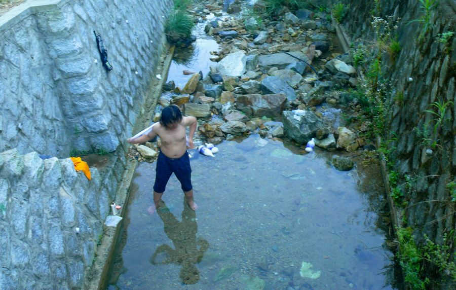 가뭄이 계속되었지만 이 계곡에는 시원한 계곡수가 흘러 내리고 있었습니다.