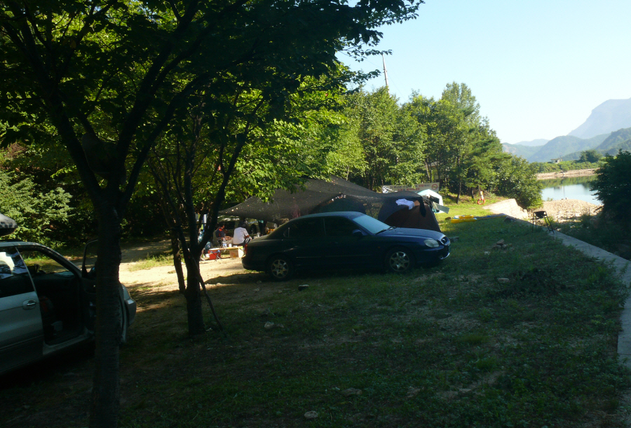 상류권에 야영객이 많아서 하류권 골자리에다가 그늘막 치고 더위를 피할 수 있게 해놓고,