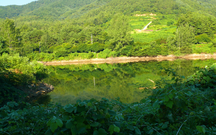 옥천권에 먼저 가 있는 기붕이님에게 옥천권에 계곡물이 흘러 내리는 저수지를 알아 보라고 하니