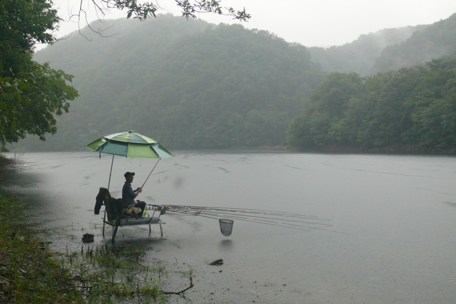 용태지는 계곡형 저수지로 배스가 많아서 입질을 받으면 거의 45센티 이상의 혹부리 붕어가 걸려 나오지만