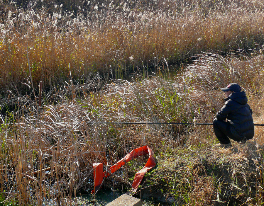 폭이 좁은 퇴수로부터 체크를 해보는데 모처럼만에 수초대를 잡은 마눌님이 오늘도 사고를 칩니다.