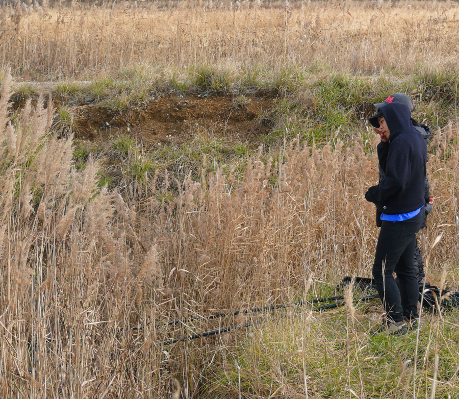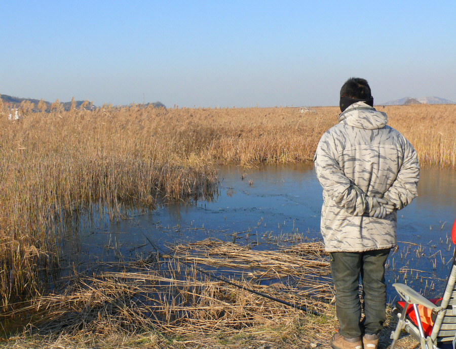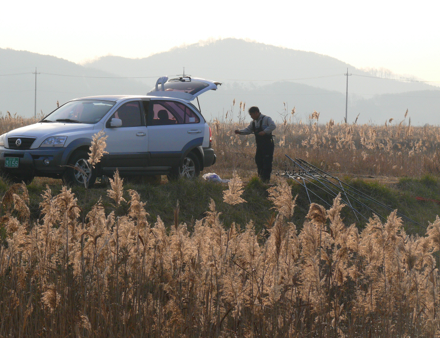 낮시간에 수초채비를 가지고 이곳 저곳 갈대 사이을 탐색해 보았지만