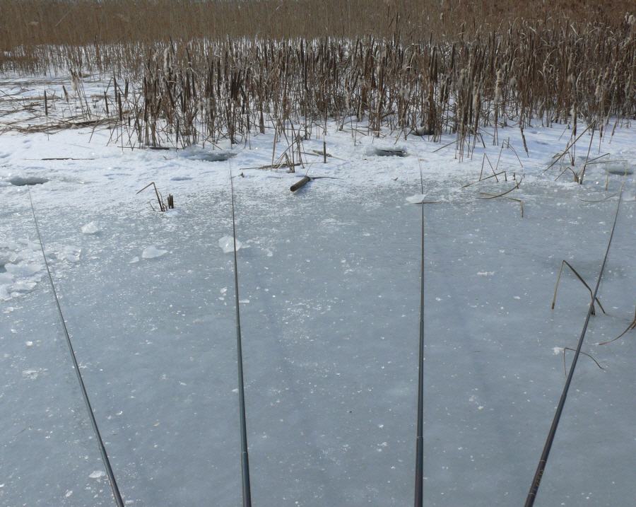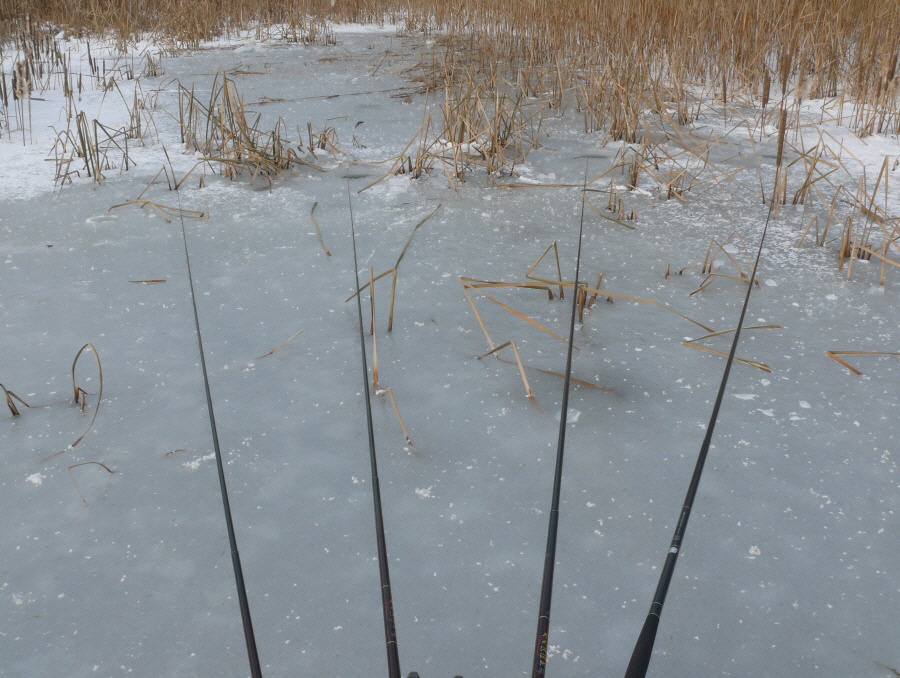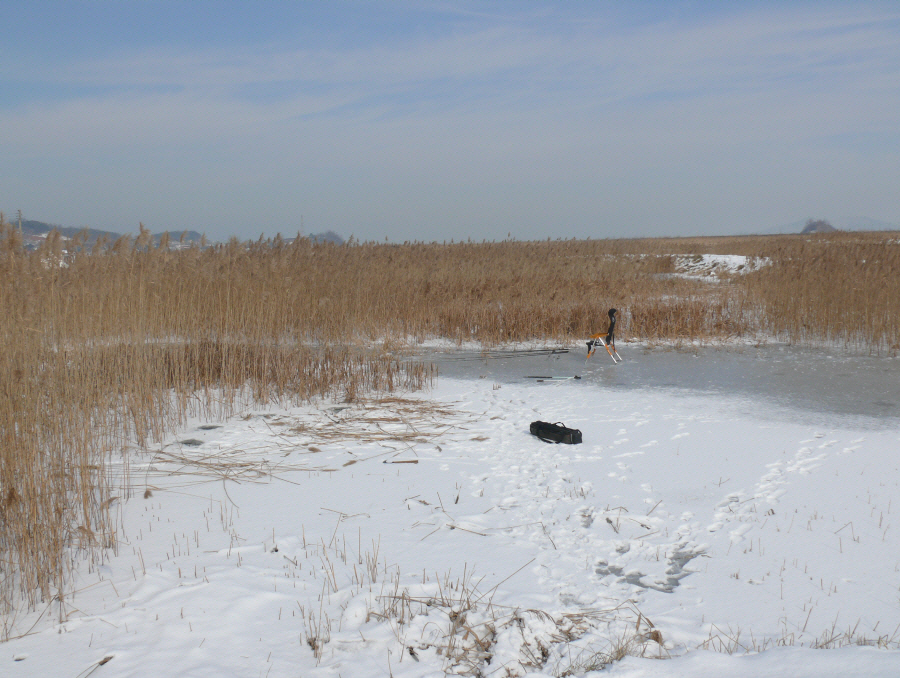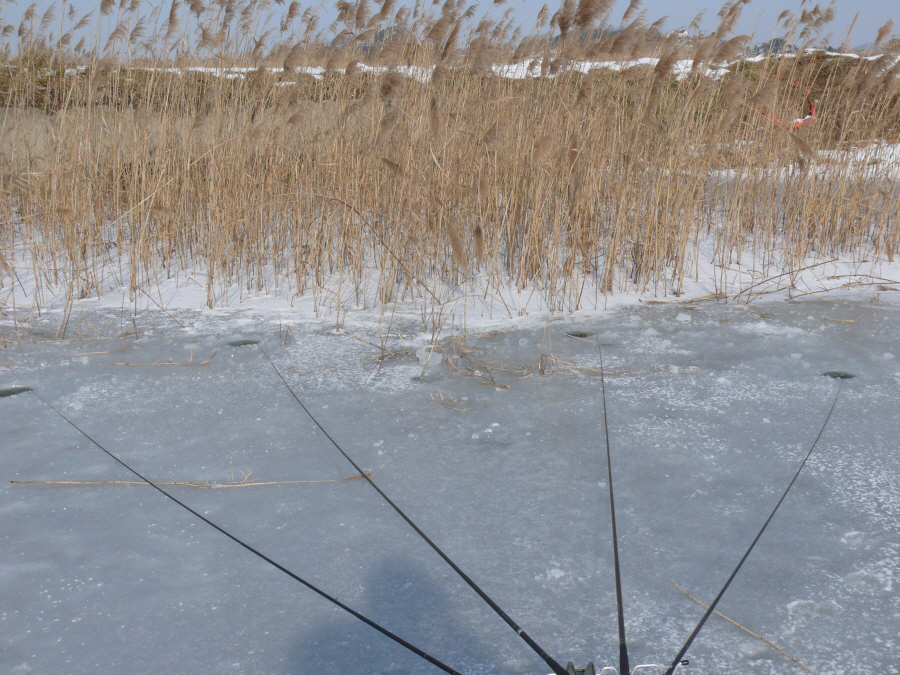 갈대포인트에서 자리를 옮겨 부들포인트에 구멍을 뚫고 입질을 기다리는데