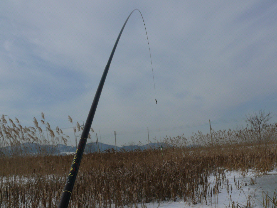 30분 정도 지났을 때 찌가 움직이기 시작하더니 이내 찌를 올려 줍니다.