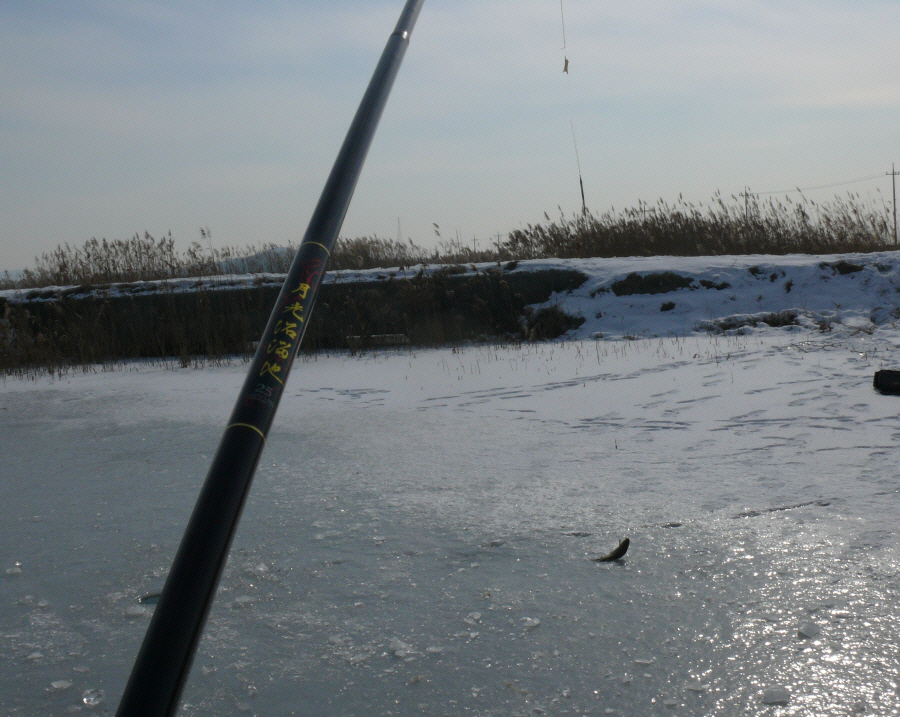 마음에 드는 각지둠벙에서 첫 구멍을 뚫고 낚시를 시작해 보는데 첫 구멍에서는 전혀 입질이 없습니다.