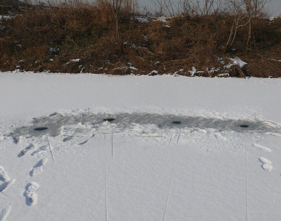 빙질은 8센티 이상이고, 얼음낚시를 하는데는 전혀 지장이 없었습니다.