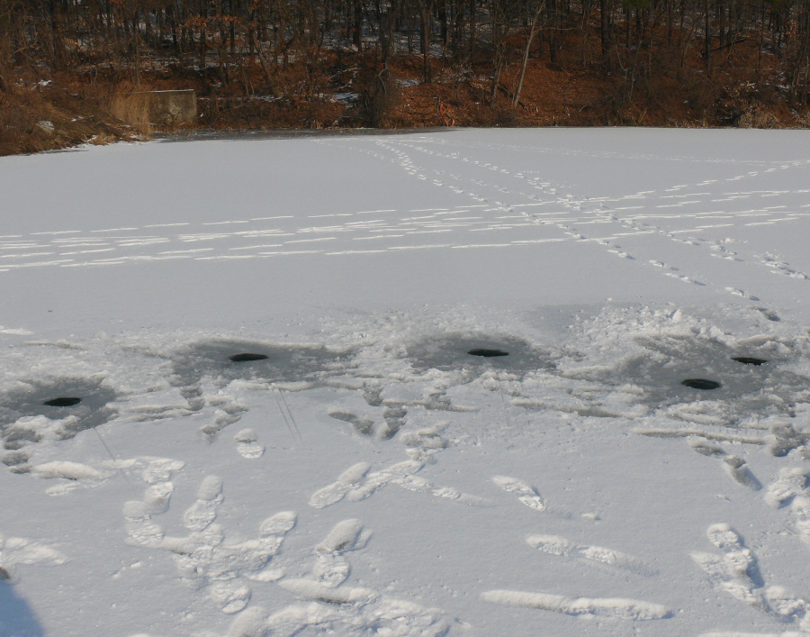 송전지의 상류권은 얼음이 모두 잡힌 상태이고, 몇몇 소류지들도 얼음낚시를 할만 한 상태였는데