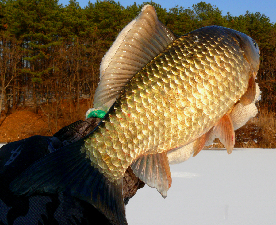 올해 얼음낚시에서 가장 멋진 붕어의 얼굴을 볼 수 있었습니다.