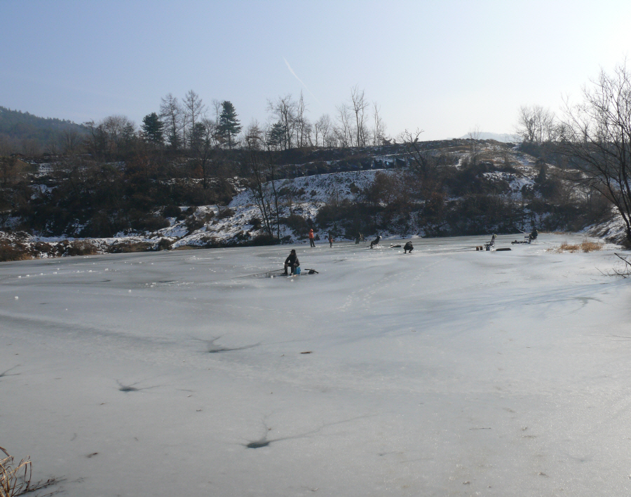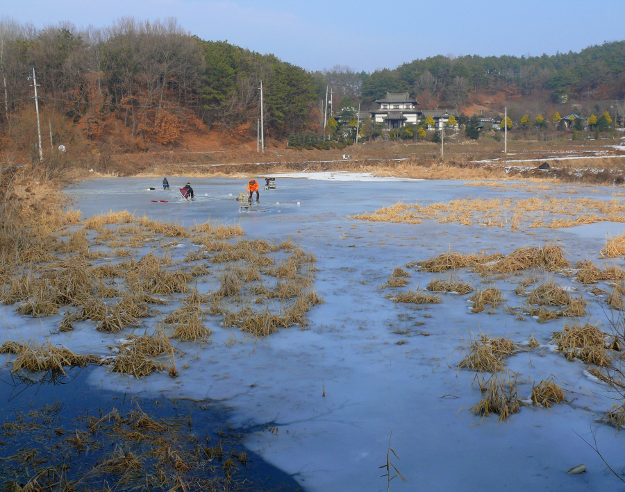 아침에 길이 얼어서 조심스럽게 운전을 하고 찾아간 괴산 소류지.