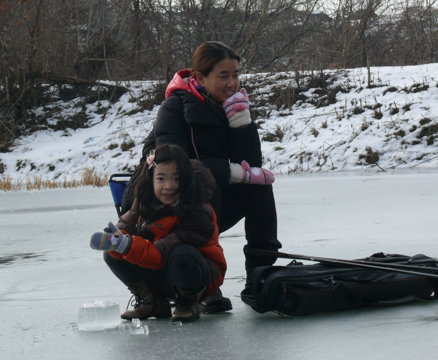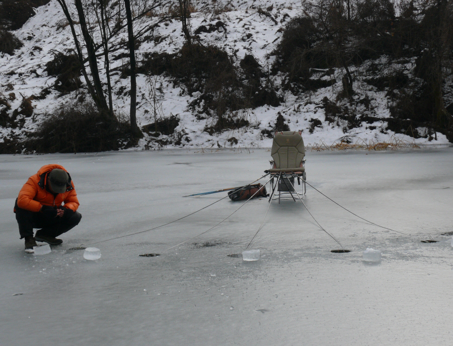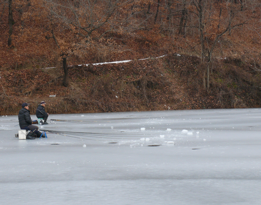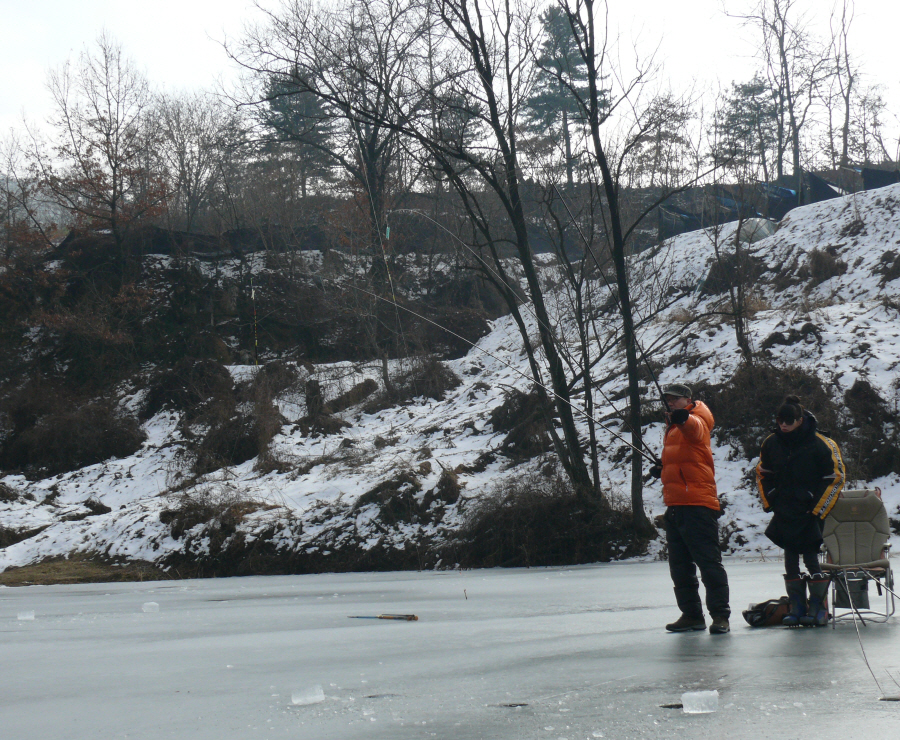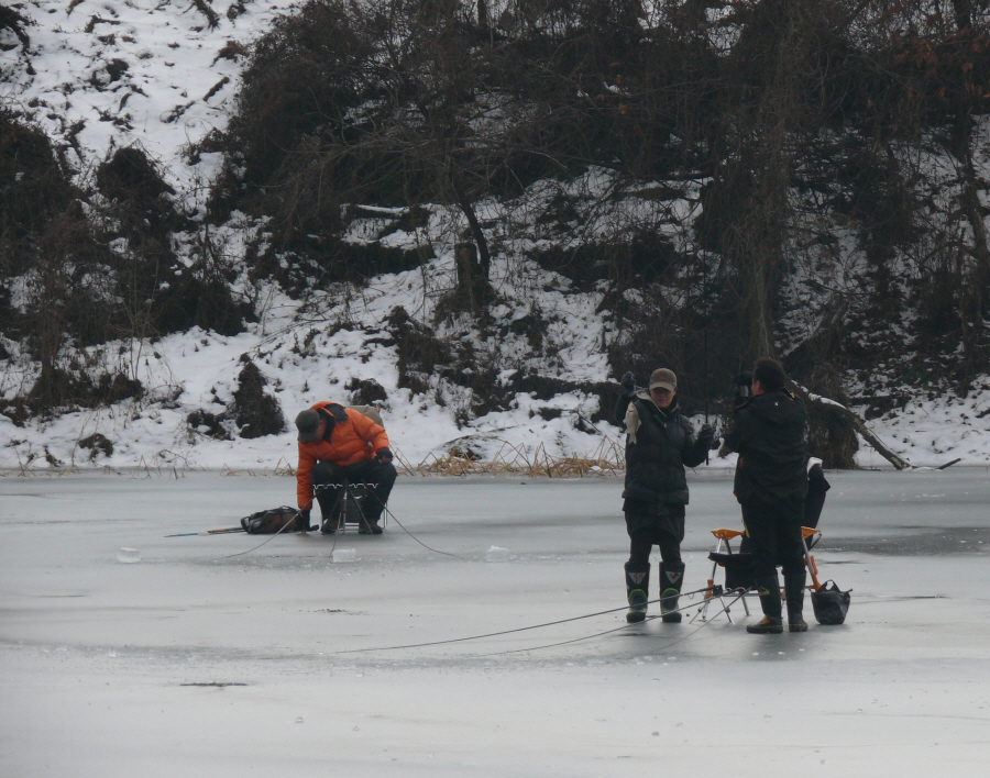 포근한 날씨로 인해 얼음이 많이 약해 진 상태지만 얼음낚시를 하는데는 전혀 문제가 없었습니다.