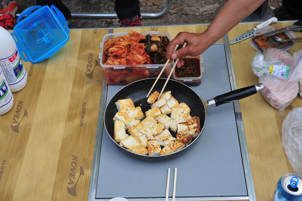어느정도 각자의 짐들을 정리하고 뜨거운 머리 좀 식힐겸 쥴리표 두부김치와 막걸리로 정신줄 찾습니다.