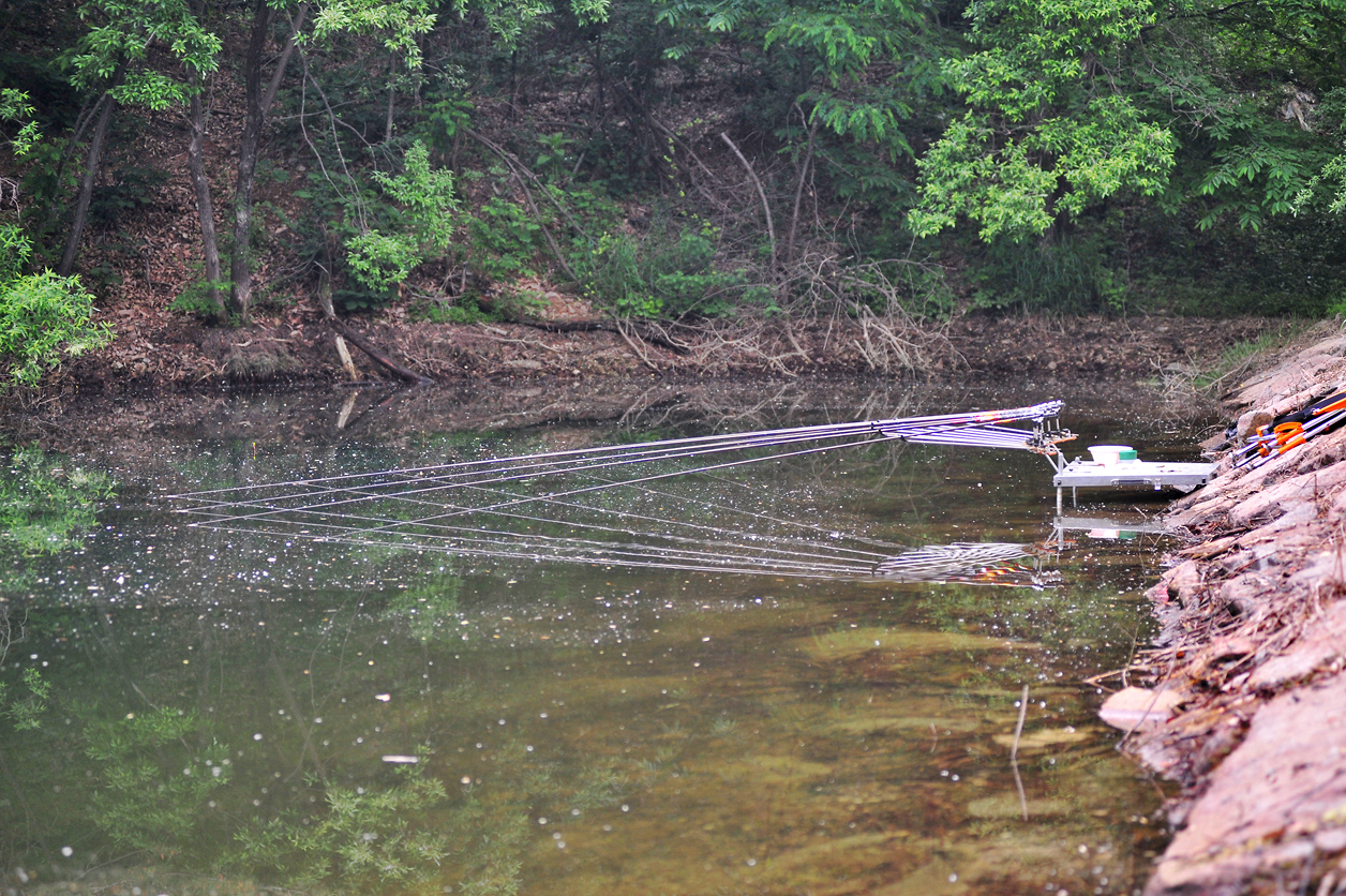 그리고 무너미에 그늘이 지고 물이 아주 맑고 4미터에 육박하는 빡센^^ 점이 맘에 들어 바로 대를 핀다.
