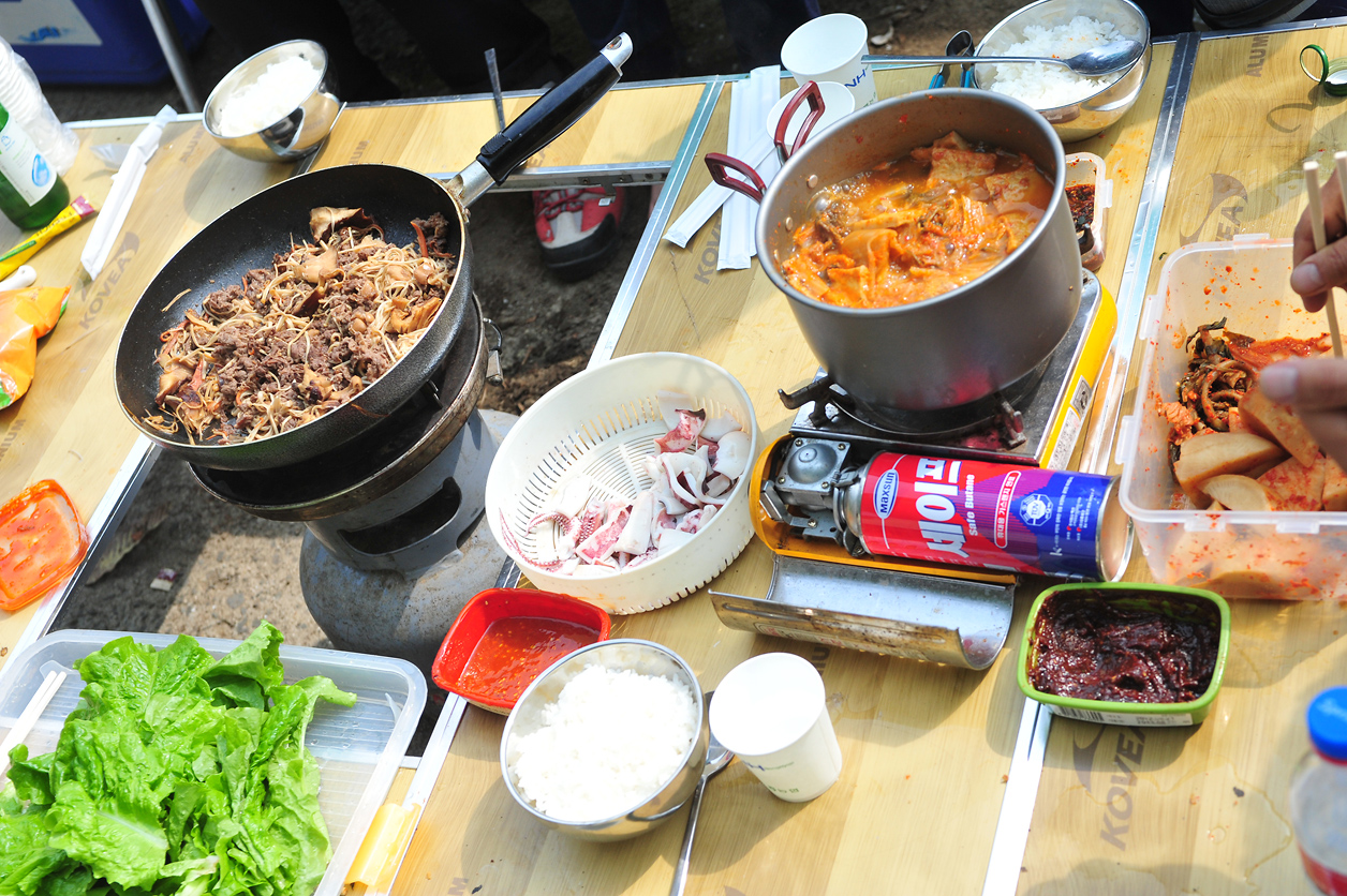 불고기 + 오뎅삼겹살김치찌개 + 오징어생물데침~^^; 어떤분이 비아냥 거리더군요~ 낚시가서 뭐 그리 챙겨 먹냐구!~ 전 붕어에 환장한 넘 아닙니다.^^;;
