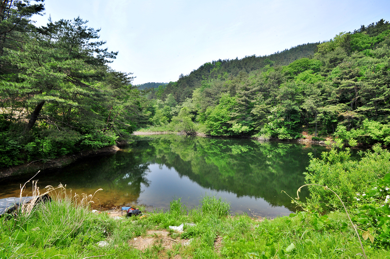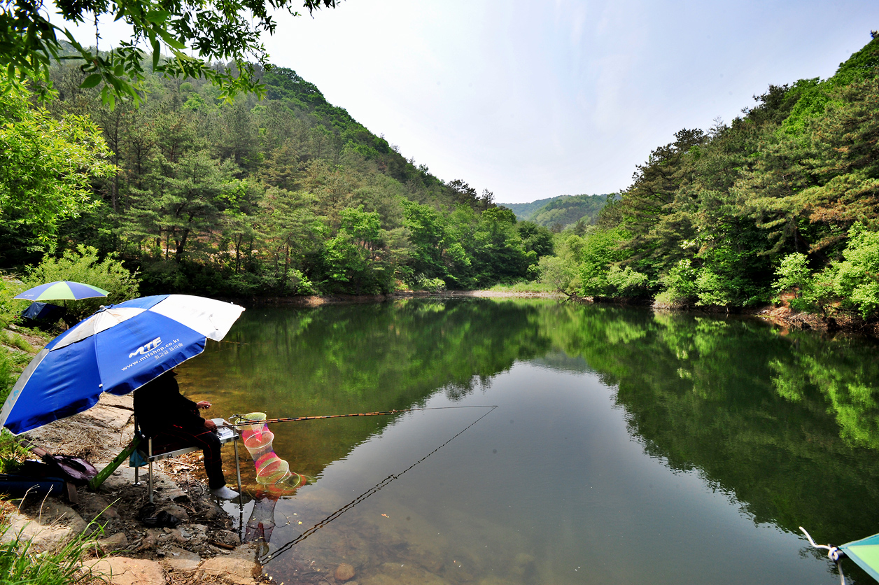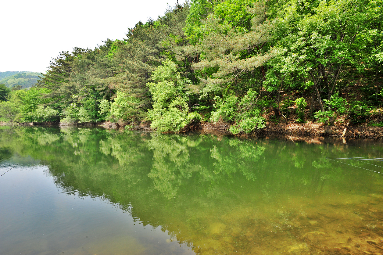 아직 아무도 도착하지 않은 청원군 문의면의 작은 소류지~ 이제 배수를 하는 저수지와 뜨거운 강가를 피해 계곡지를 찾습니다.