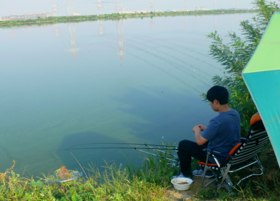 아침에 입질을 보려 했지만 녹조가 많이 밀려와서 낚시할 여건이 되지 않습니다.