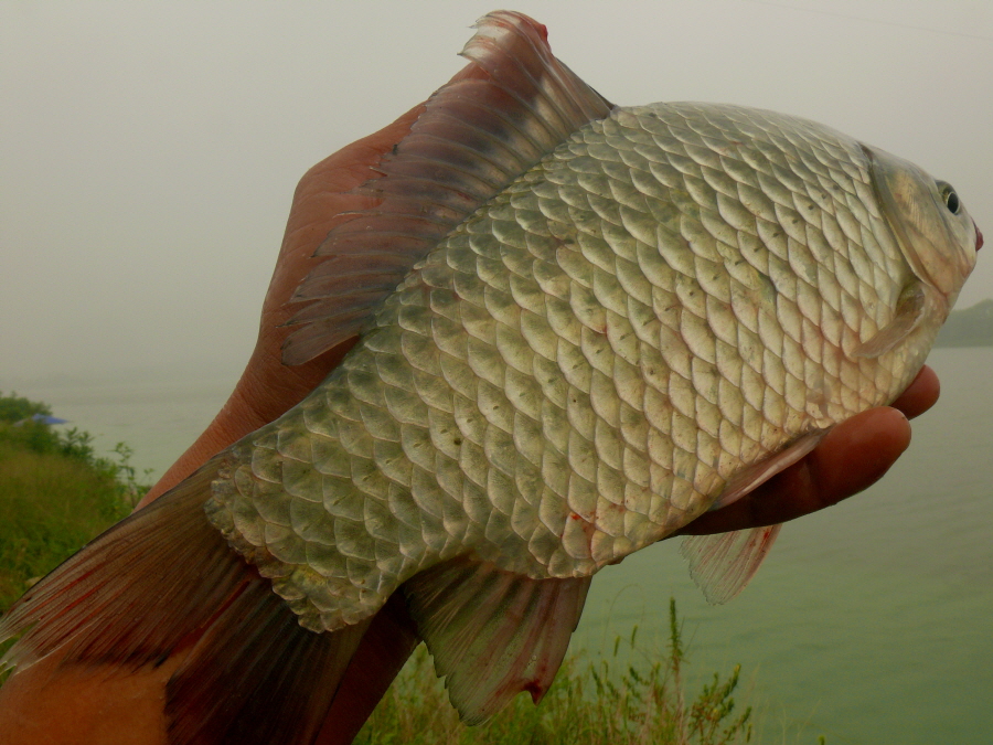낮시간에 아들놈이 8치급 붕어를 걸어 내었고