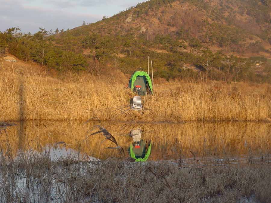 씁쓸한 마음으로 그물을 피해 포인트를 정하고, 굵은 참붕어를 미끼로 대물과의 승부에 들어갔다.