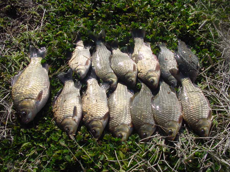 아침이 되어 지렁이 미끼로 수초치기낚시로 모두들 돌입했고 그 결과,