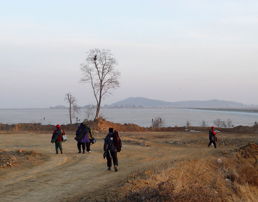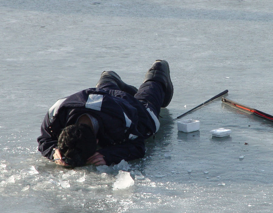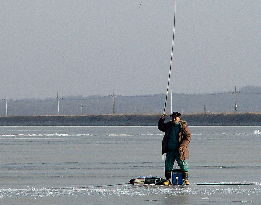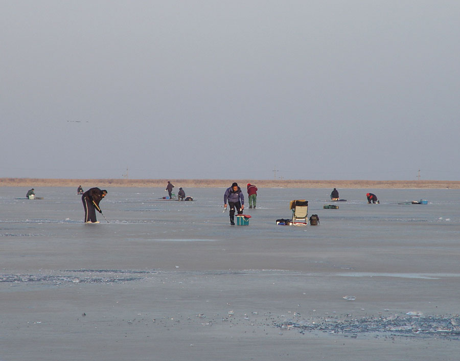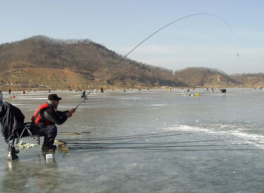 얼음구멍을 뚫기 시작하였다.