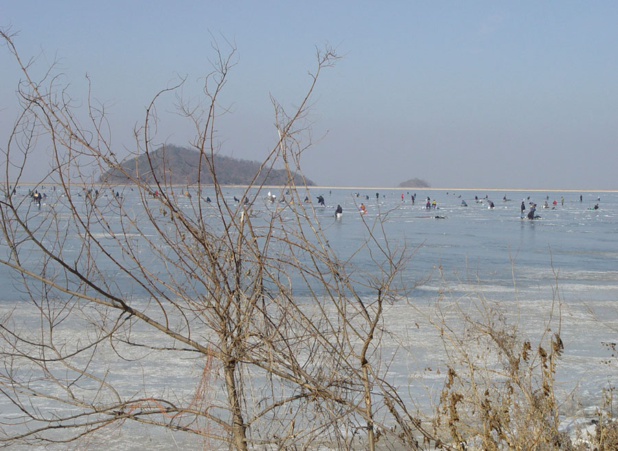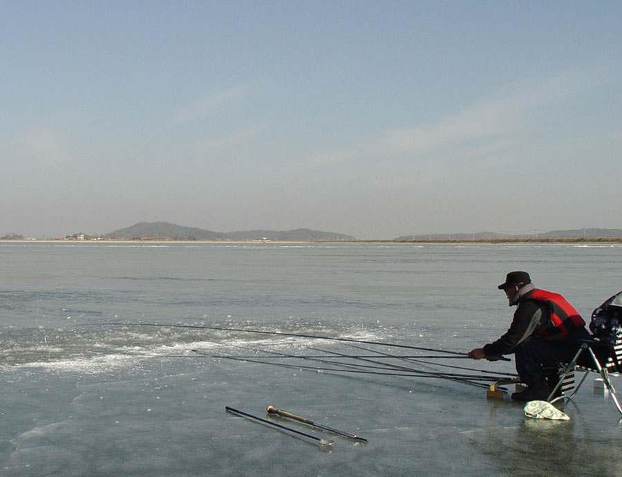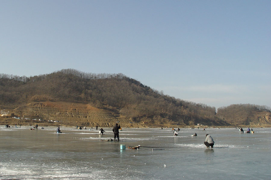 얼음두께도 20 - 25 cm 로 빙질도 안전하였다.