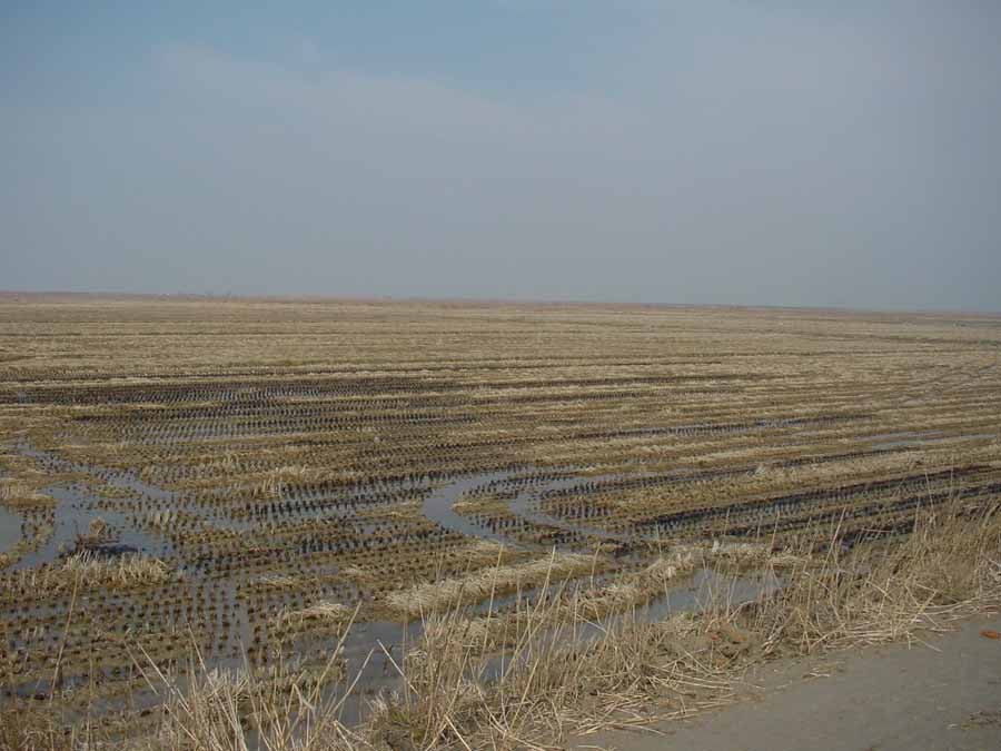 넓은 평야 가운데에 둠벙이 숨어 있습니다