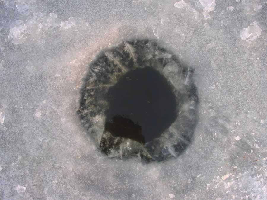방금 들어간 채비가 찌는 물론 급기야 낚싯대까지 얼음 구멍속으로 빨려 들어가기 시작했다.