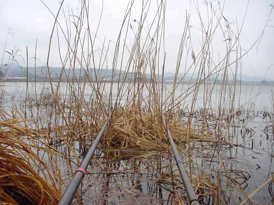 4칸, 5칸 수초치기대로 갈대와뗏장 접경지점에