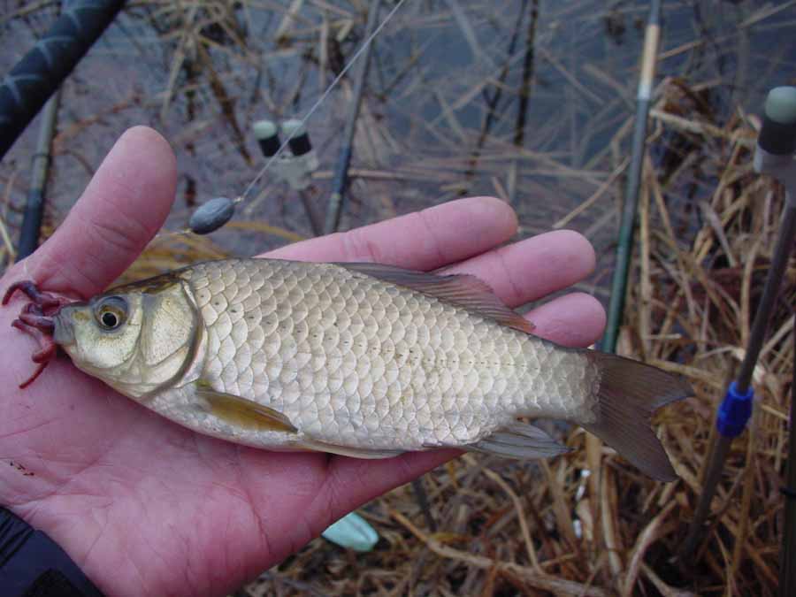 오전 11시가 되어 포기를 선언하고 낚싯대를 걷을 무렵 드디어 필자의 찌가 솟고 6치급 붕애를 만났다.
