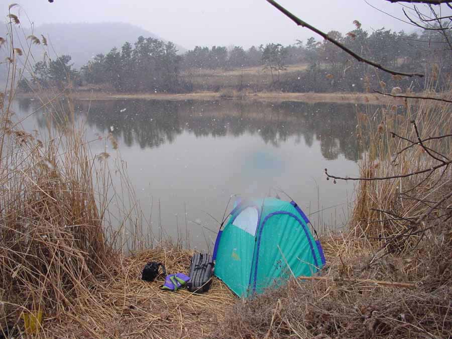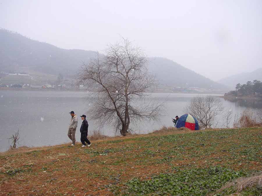 다음날 아침 내리는 눈발속에 떡밥낚시까지 시도해가며 붕어 얼굴 보기에 나섰으나 빈작은 마찬가지였다.
