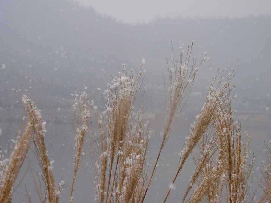 갈대에 눈꽃이 피고