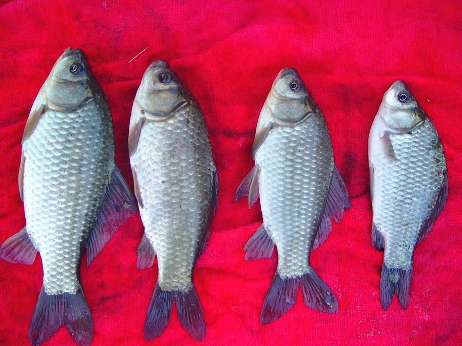 아침에 나온 6치급 붕어... 얼마나 그리웠으면... ^