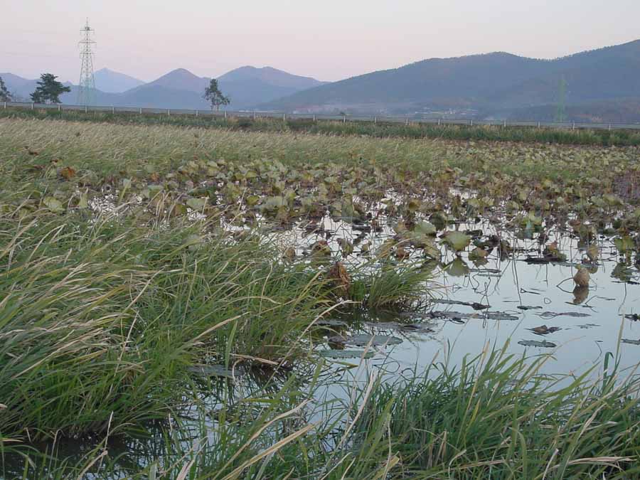 중하류권 전역에 연밭이 형성되어 있으며 이미 삭기 시작 하였슴