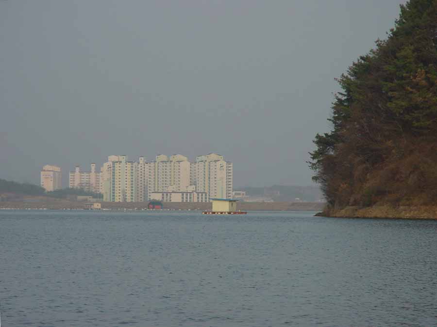 멀리 제방넘어 아파트 단지가...