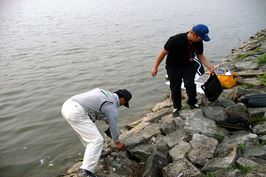많은 비가 내려서 수위는 만수위고 아직까지 산란중이어서 제방권으로는 많이 모이지 않은것 같다.