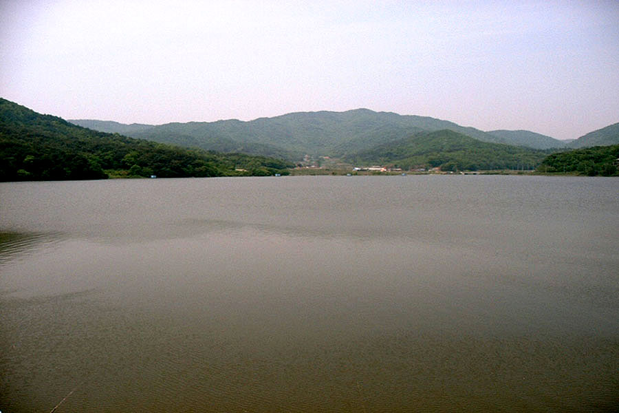제방에서 바라본 용연지 전경...