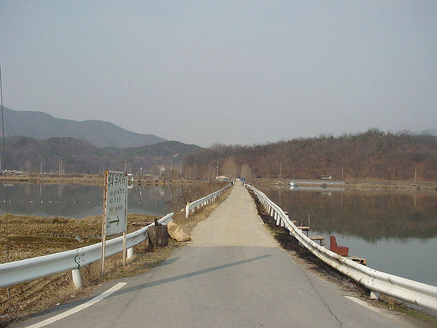 뒤에 보이는 다리밑으로 달천강과 입석낚시터의 물고기 이동경로 입니다..