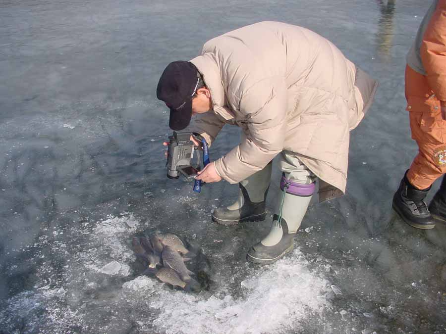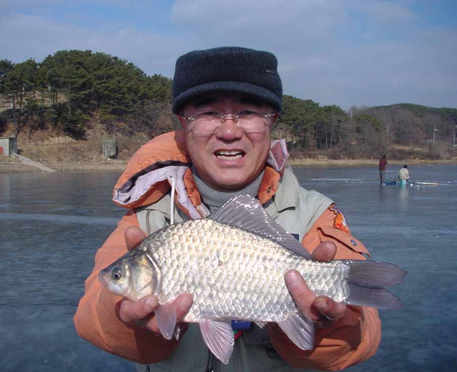 포인트님의 '월척이다'란 함성이 들리면서 월척급으로 보이는 붕어가 얼음판 위에서 나뒹굴고 있는 것이었다.