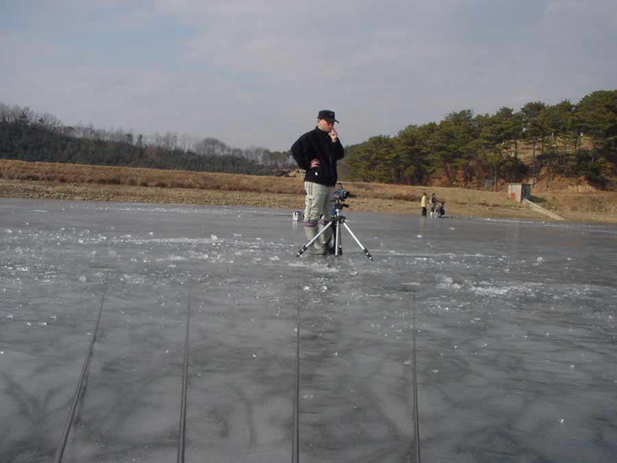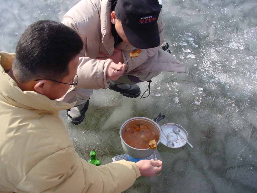 그리고 필자의 자리에서도 얼음뜰채로 살얼음을 제거 하던 중,
