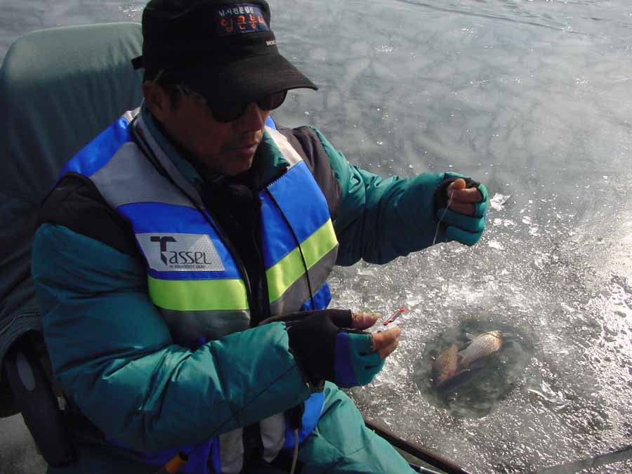 아직 이른 오전시간이라 그런지 얼음 구멍에는 살얼음이 계속해서 잡히고 지렁이 미끼는 잡어의 성화에 남아 있지를 않고