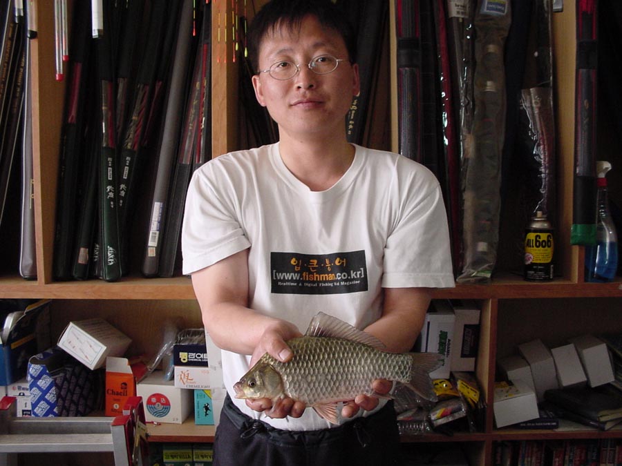 그 살림망에는 9치급 붕어와 8치급 붕어는 전혀 보이지 않고 9치급 떡붕어와 6치급 붕어만 달랑 들어있다.